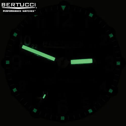 文字盤:24時間表示、スイス製スーパールミノバ蛍光塗料