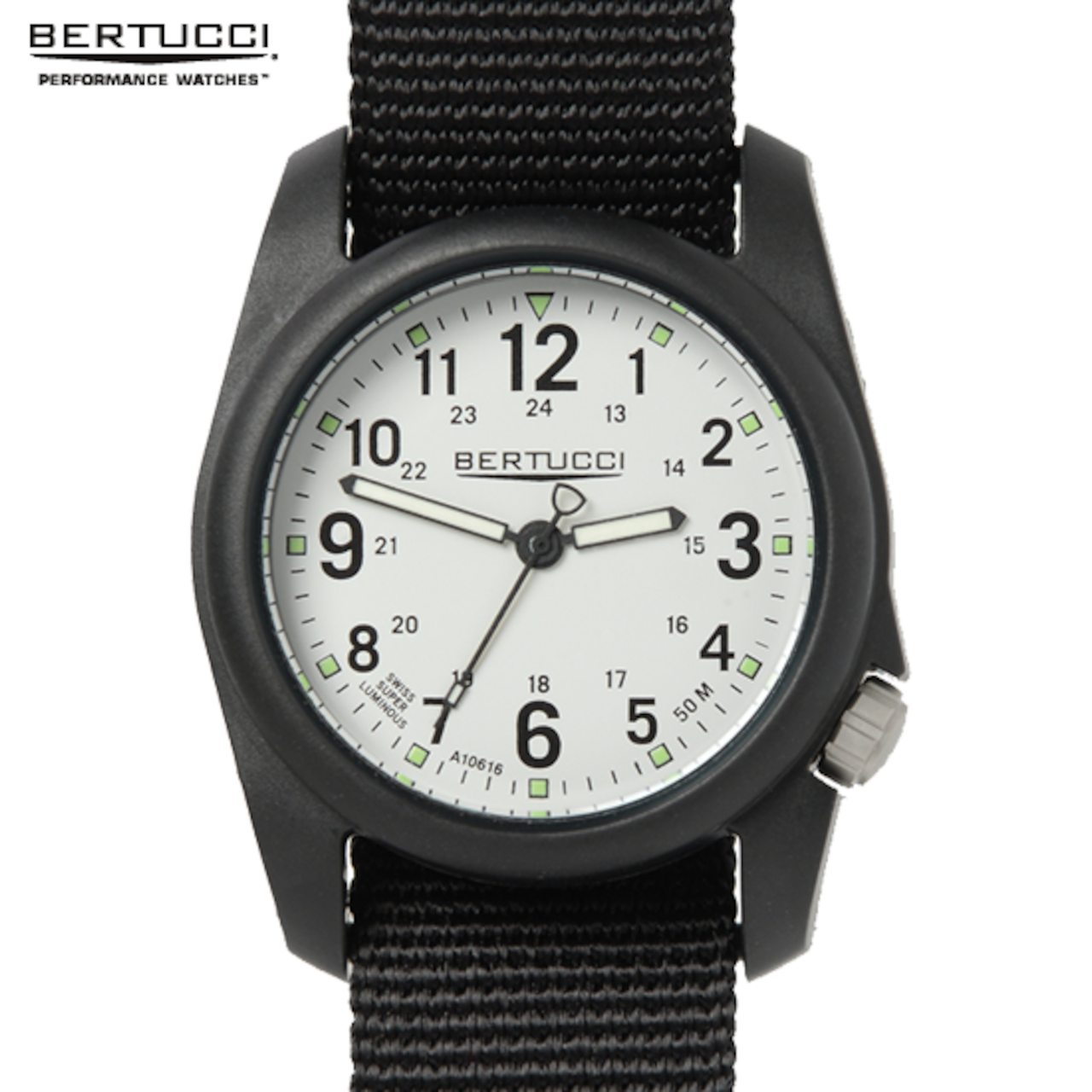 文字盤:24時間表示、スイス製スーパールミノバ蛍光塗料
